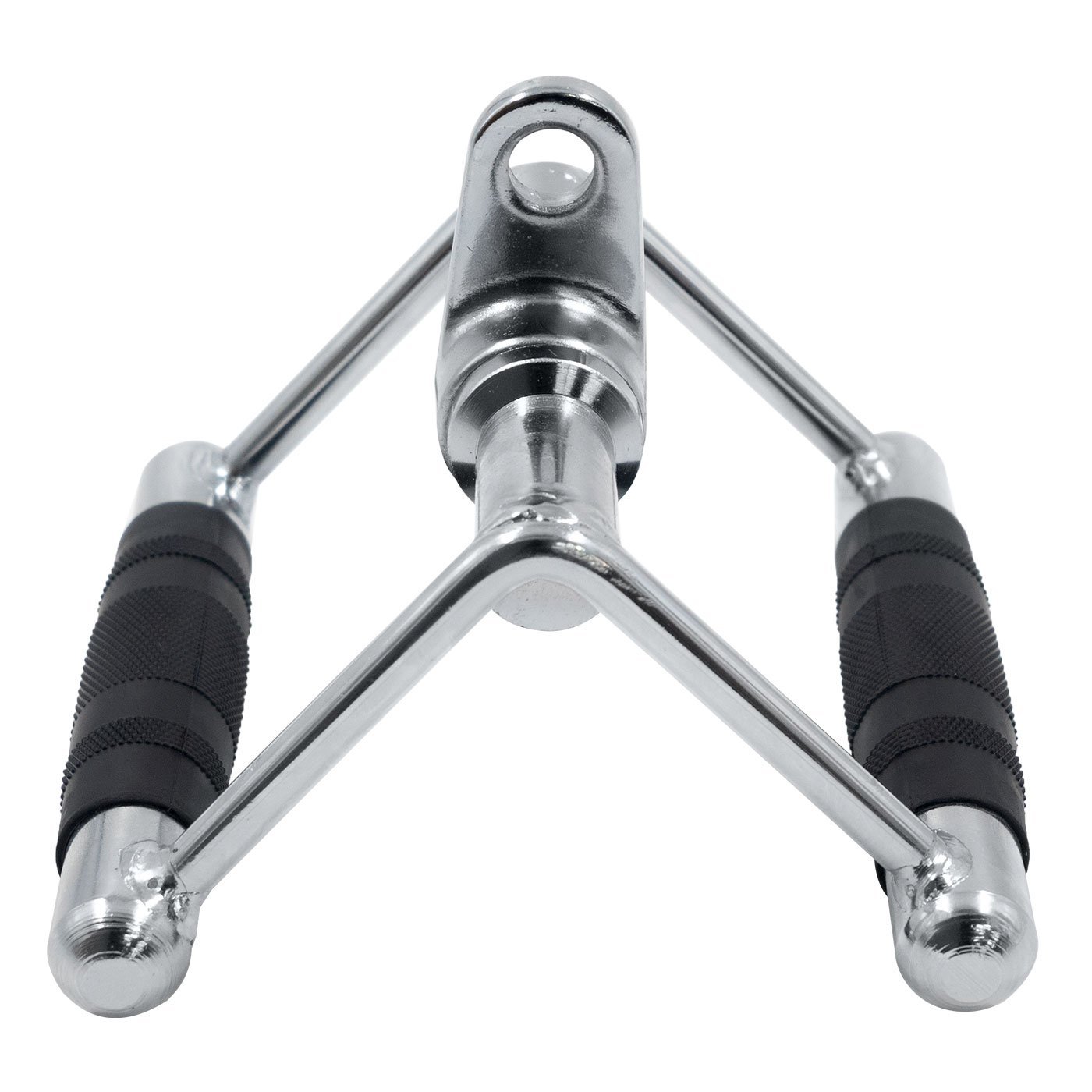 Es un accesorio versátil que se puede utilizar para una amplia variedad de ejercicios, desde extensiones de tríceps hasta flexiones de tríceps ya sea de pie o sentado en una máquina de poleas.