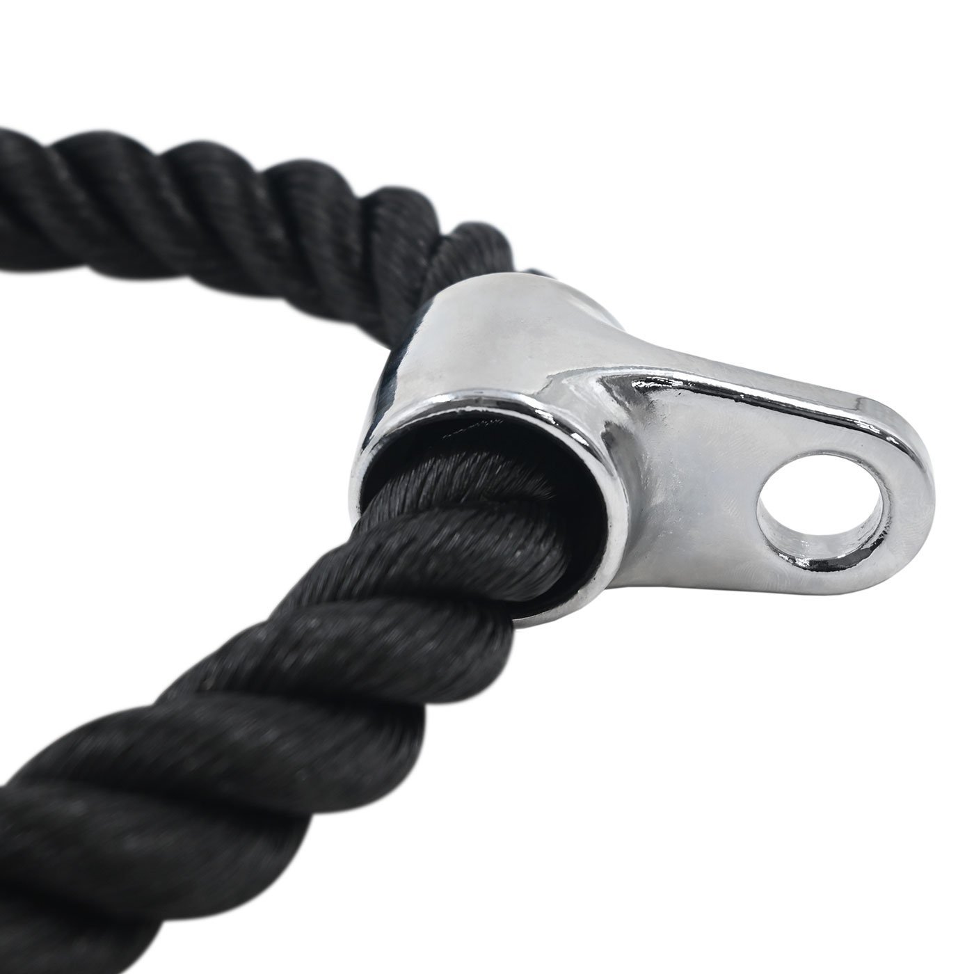 Diseñado para desarrollar tus tríceps, bíceps, espalda, hombros, abdominales y mejorar tu fuerza de agarre. Es un accesorio versátil que se puede utilizar para una amplia variedad de ejercicios, desde extensiones de tríceps hasta flexiones de tríceps ya sea de pie o sentado en una máquina de poleas.