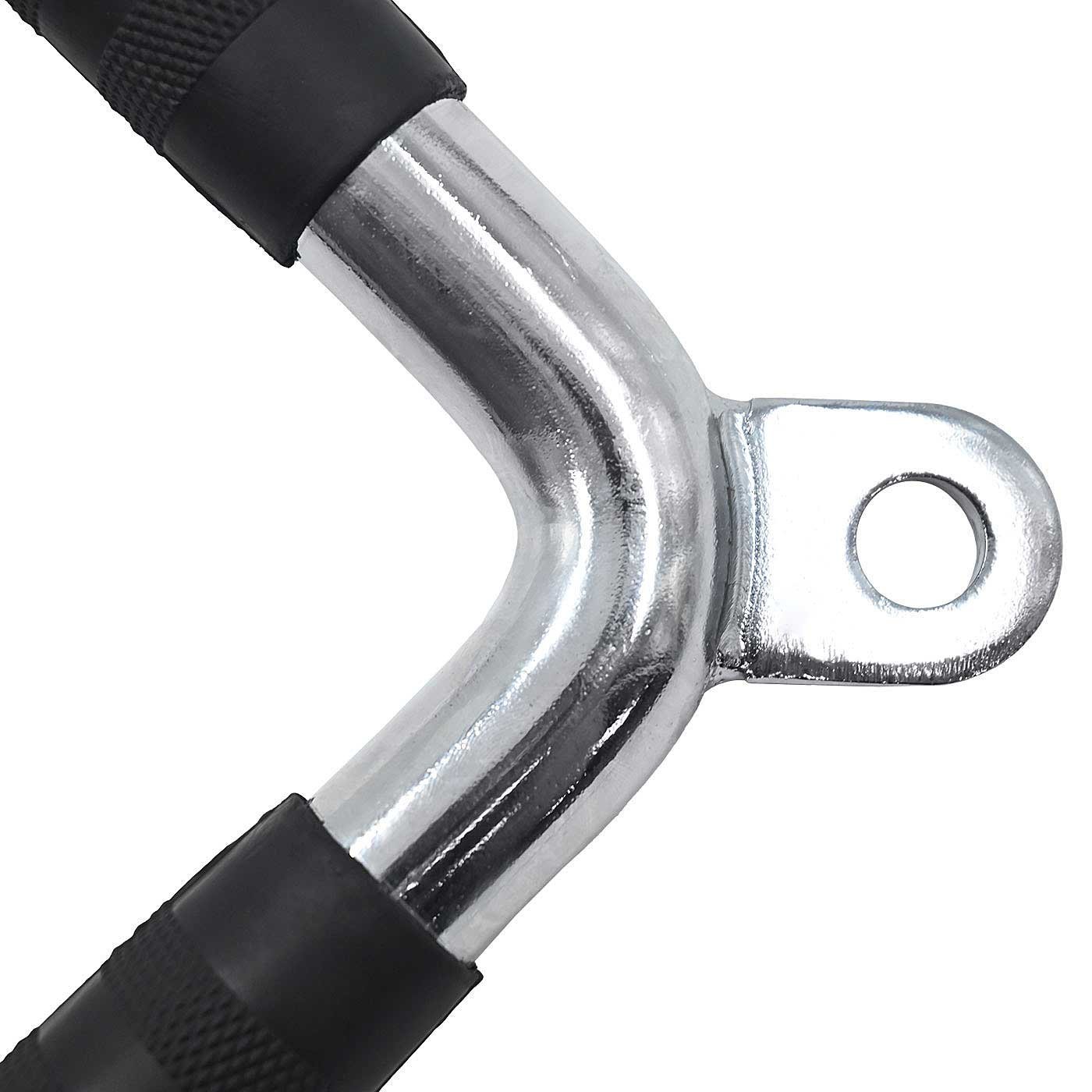 Fabricada en acero de alta resistencia y agarres y tope en caucho antideslizante, su estructura en forma de V proporciona mayor comodidad en sus muñecas.