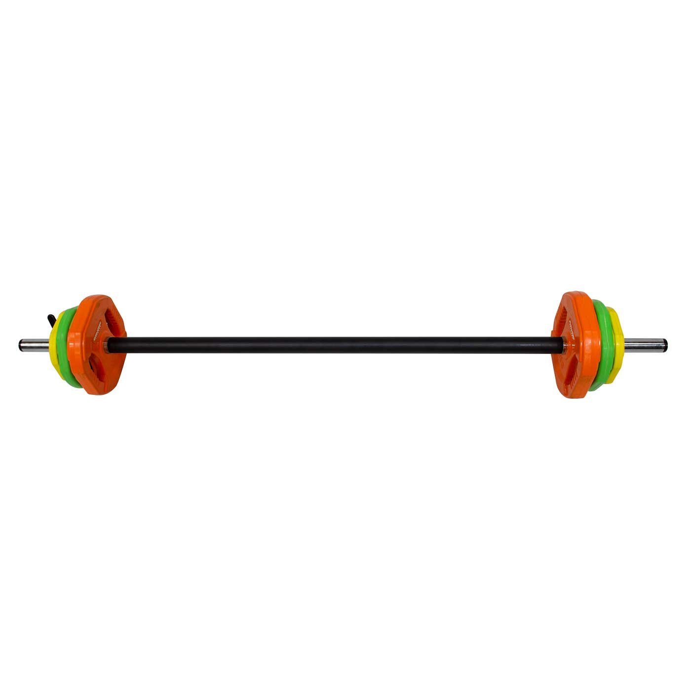 Realice entrenamiento de fuerza y resistencia en casa o en un gimnasio con este bello set body pump y sus discos de color encauchetados. Úselos con la barra o de forma independiente por sus agarres ergonómicos.