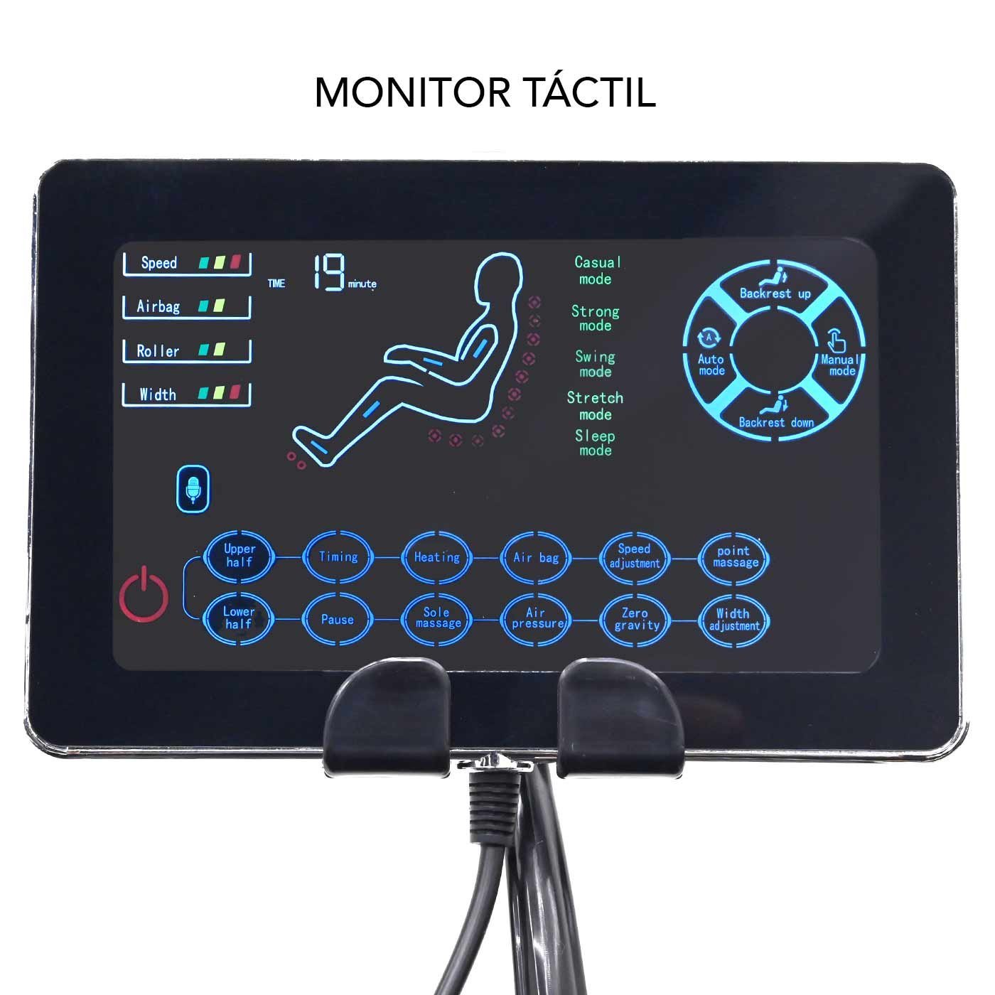 Mecanismo: 4 rodillos de cabeza hasta glúteos Y 2 juegos de rodillos para pies