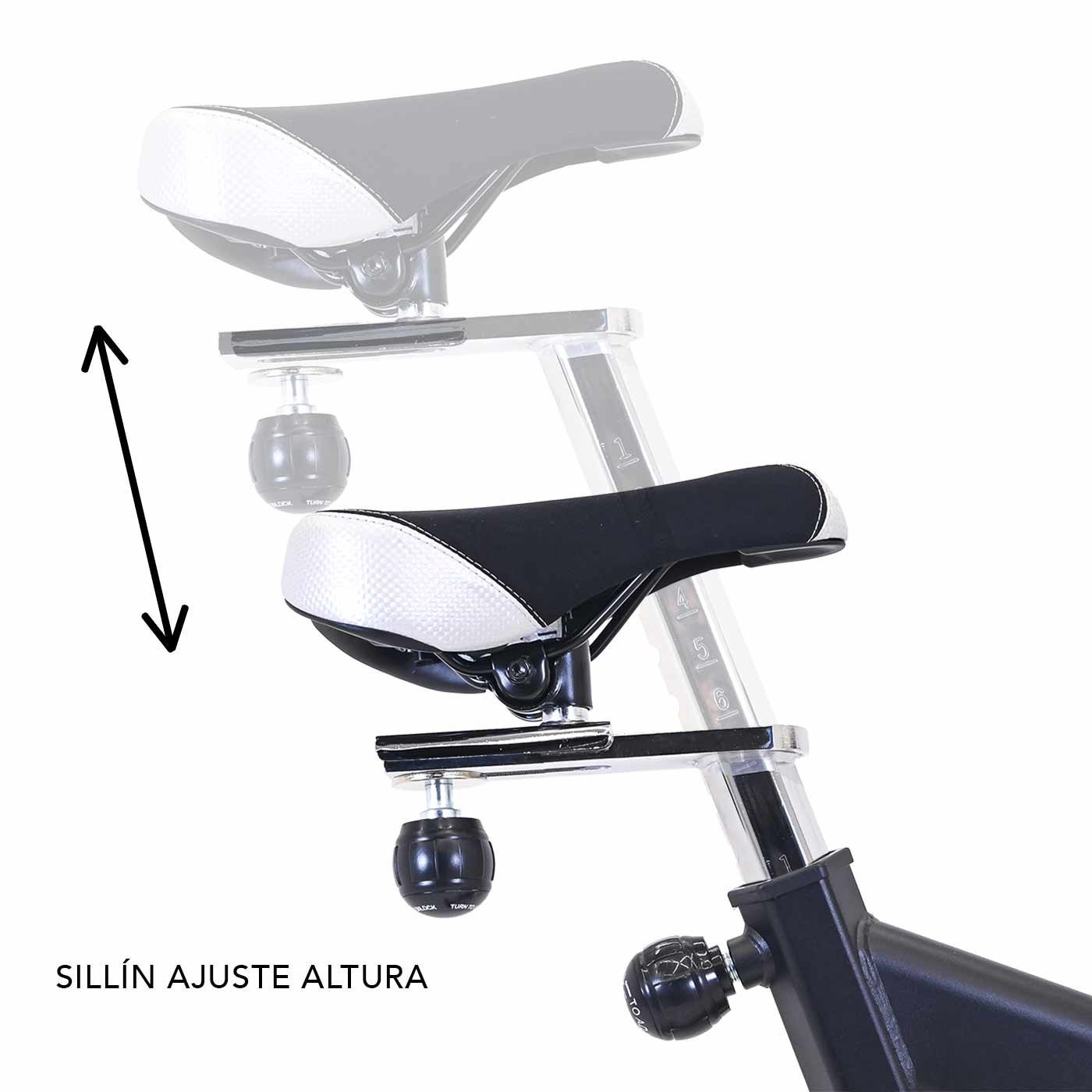 Ajusta el sillín horizontal y verticalmente para encontrar tu posición perfecta. El monitor integrado te mantiene al tanto de tu velocidad, calorías, distancia y tiempo, permitiéndote optimizar cada sesión. Ya sea para quemar calorías o mejorar tu resistencia, la Spinning EVO SPEEDY 4 es tu aliada ideal.