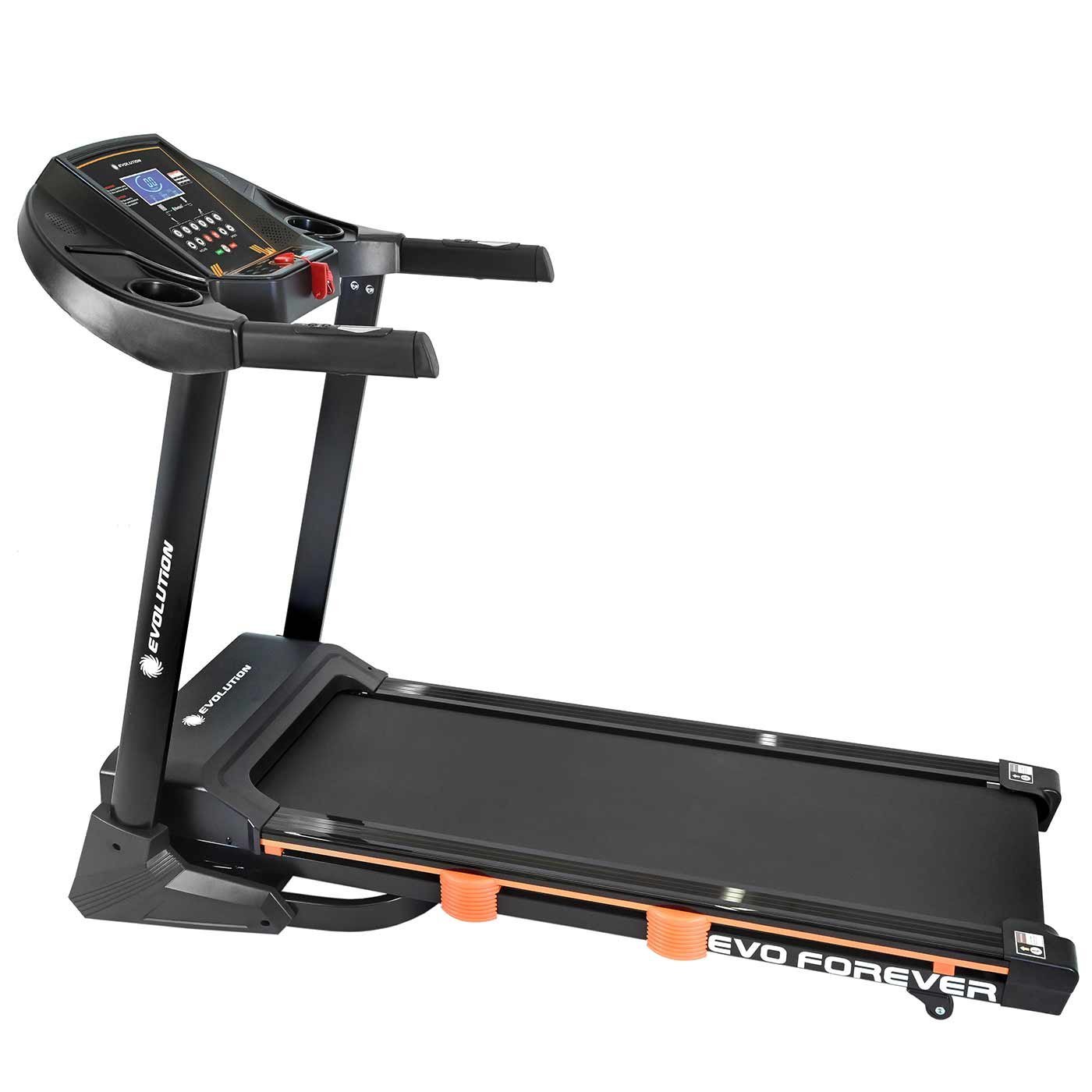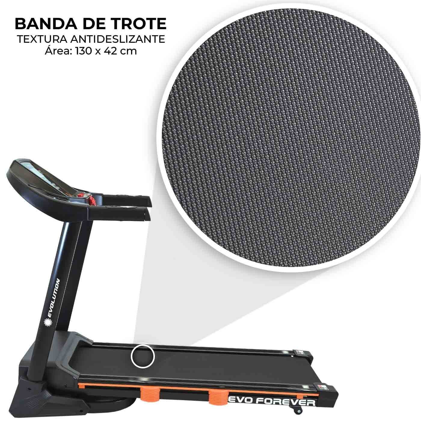 Potente motor de 2.75 HP y velocidad máxima de 16 km/h para desafiar tus límites. Display digital completo y sensor cardíaco para un control total. Con 15 programas y 15% de inclinación, personaliza cada sesión. Su amplia área de trote de 130×42 cm garantiza comodidad, mientras que su sistema de plegado ahorra espacio. Diseñada para resultados, la trotadora EVO FOREVER es tu aliada fitness definitiva.