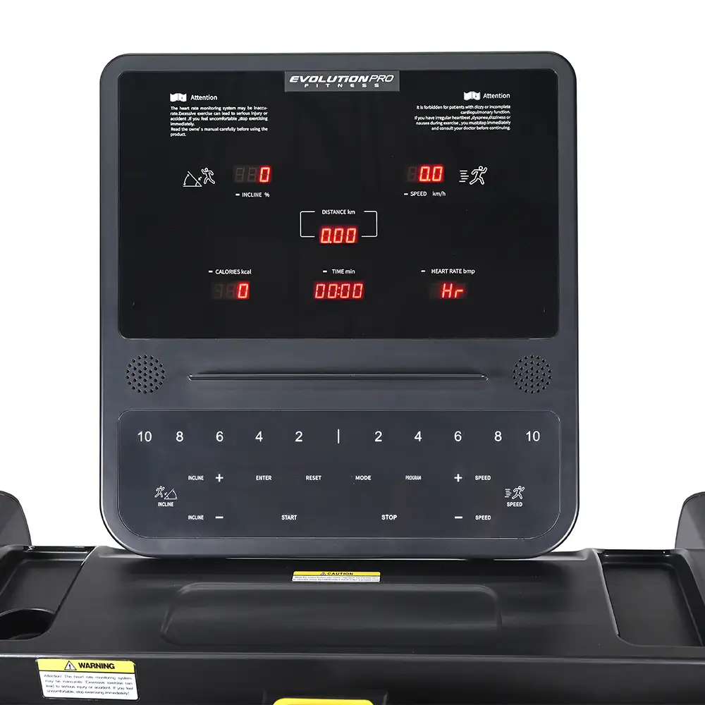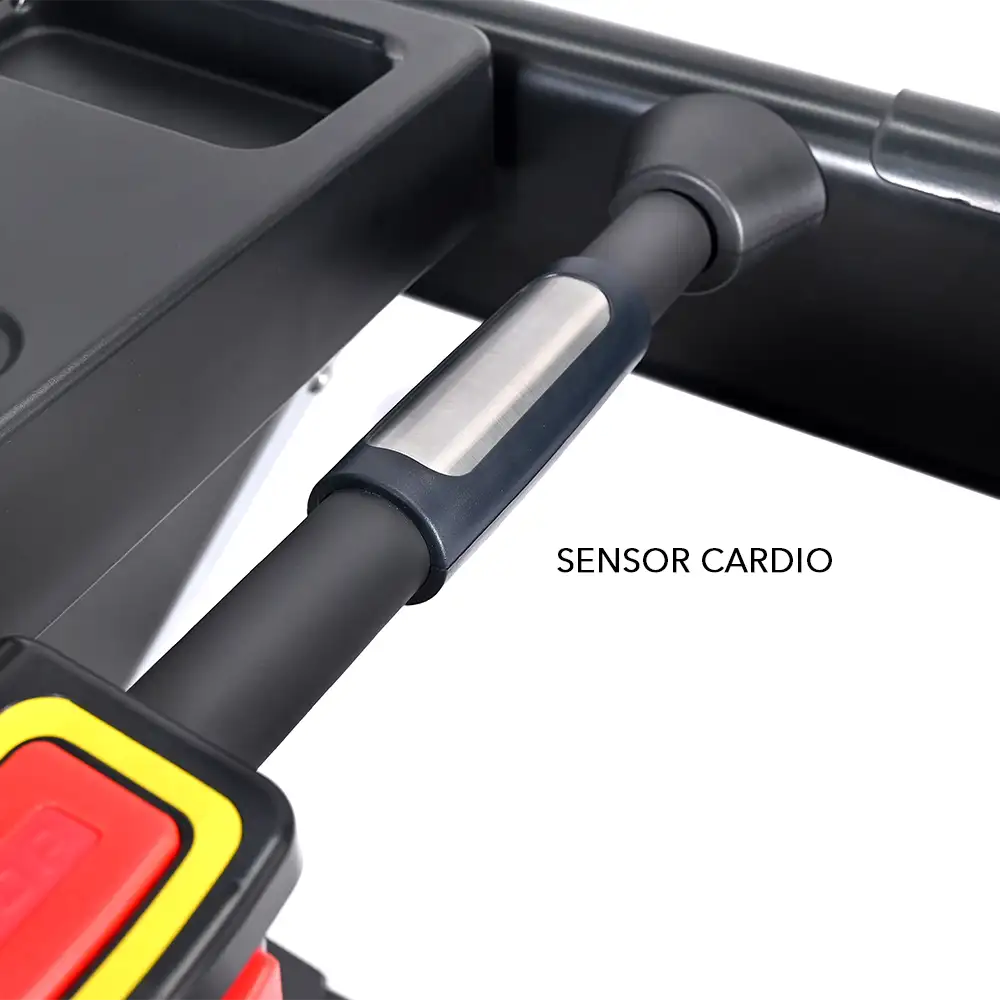 Informa: velocidad, inclinación, ritmo cardiaco, distancia, tiempo.