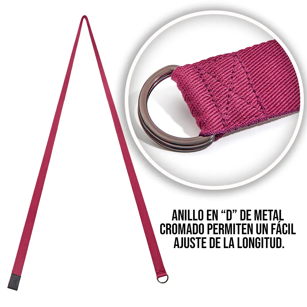Ideal para mejorar su rango general de movimiento y desarrollar flexibilidad, los anillos en D de metal cromado de la correa de yoga le permiten realizar fácilmente ajustes suaves e incrementales en la longitud de la correa, ayudándolo a lograr una alineación adecuada.