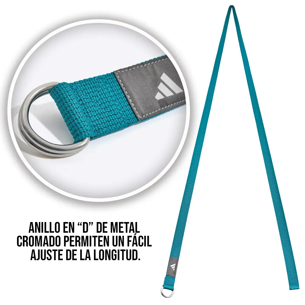 Ayudando a lograr una mejor alineación postural mientras mejora su rango de movimiento y flexibilidad general, la correa de yoga adidas le permite realizar ajustes incrementales suaves mientras apoya cada postura. Equipada con un resistente cierre de anilla en D de metal cromado, la correa mide 253 cm de largo y es fácil de ajustar a medida que trabaja para lograr una alineación perfecta.